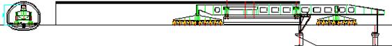 3、操作系統(tǒng)由運(yùn)輸狀態(tài)轉(zhuǎn)換至喂梁狀態(tài),由后車及主支腿驅(qū)動(dòng)裝置推動(dòng)整機(jī)前行,當(dāng)輔助支腿到達(dá)待架孔前方橋墩支承位置時(shí)停車。在箱梁下面放置臨時(shí)支墩,并將箱梁放在臨時(shí)支墩上,然后打好輔助支腿。