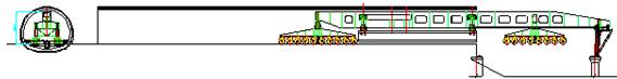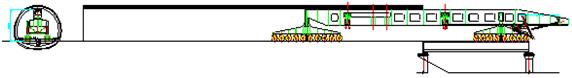① 打開主支腿定扭矩馬達(dá),當(dāng)反饋信息表明馬達(dá)工作正常時(shí),啟動(dòng)后車,以每分鐘不超過2.5米的速度前行過孔。同時(shí)觀察主支腿水平力監(jiān)測(cè)顯示是否正常(此時(shí)上鋼銷顯示數(shù)據(jù)大致在80kN左右,對(duì)鋼銷受力數(shù)值的控制是:上鋼銷150kN報(bào)警,170kN斷電;下鋼銷570kN報(bào)警,650kN斷電),如發(fā)現(xiàn)主支腿水平力數(shù)值異常,須檢查故障原因,排除后方可繼續(xù)過孔作業(yè)。當(dāng)輔助支腿已上到前方橋墩時(shí),以慢速使輔助支腿就位。