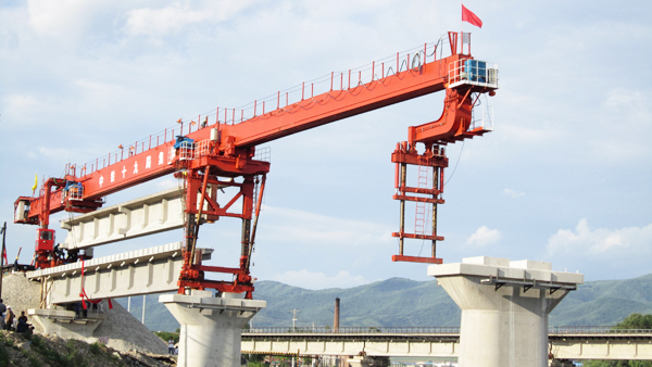 最后是組裝架橋機的天車,組裝架橋機天車時,天車的輪組、定滑輪安裝后,擺放卷揚機和動滑輪。整機拼裝完成后,掛動力線試運行,沒有問題后方可進行下一步的操作和拼裝。